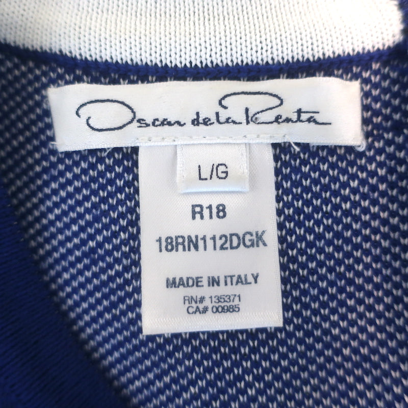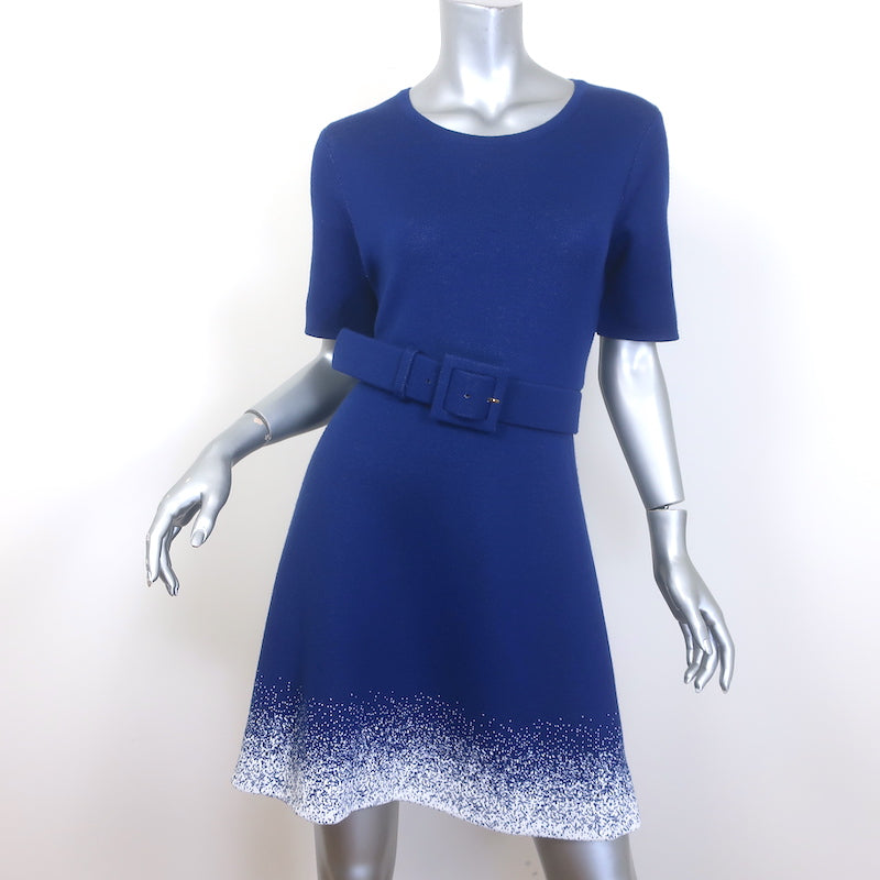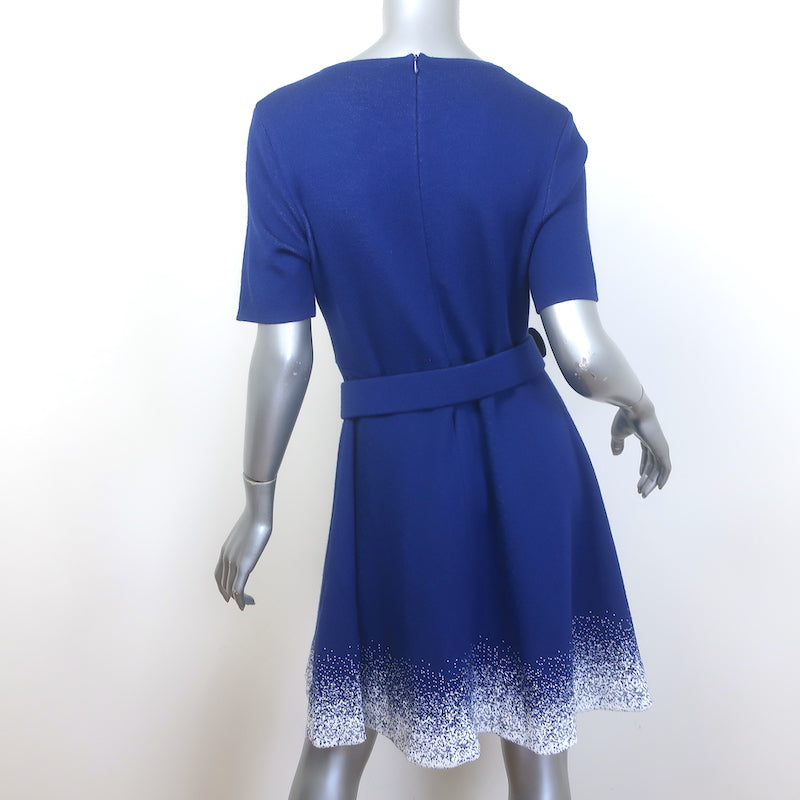 Oscar de la Renta Belted Fit & Flare Dress Blue/White Speckled Knit Size Large