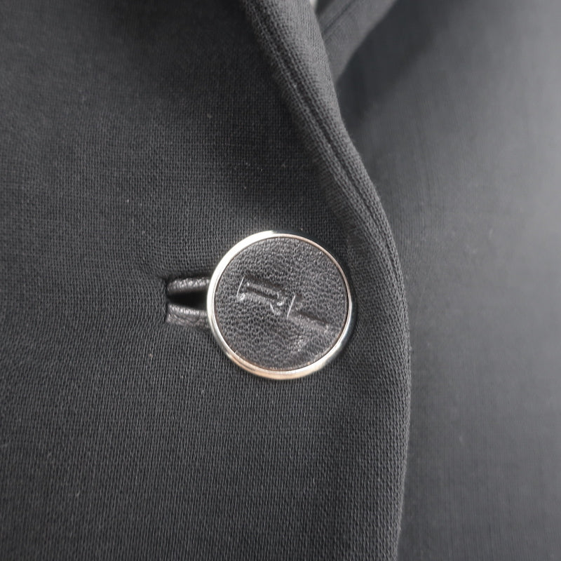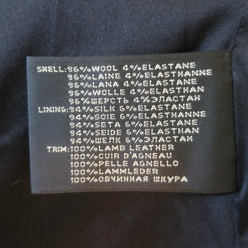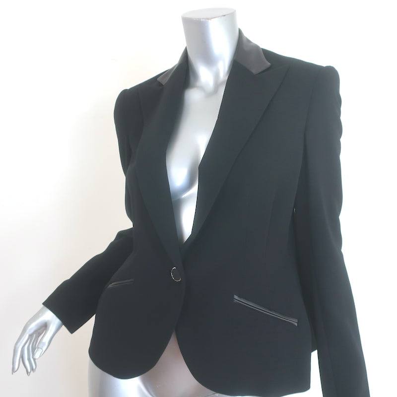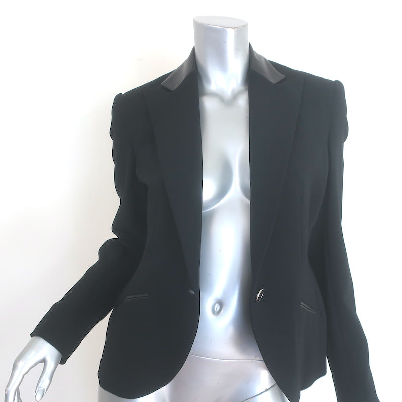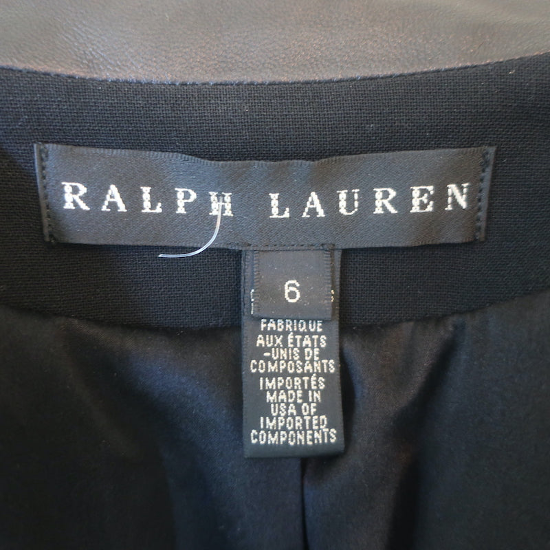 Ralph Lauren Black Label Leather-Trimmed Blazer Black Stretch Wool Crepe Size 6