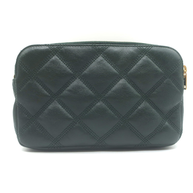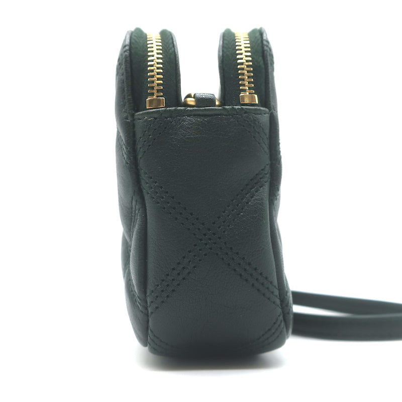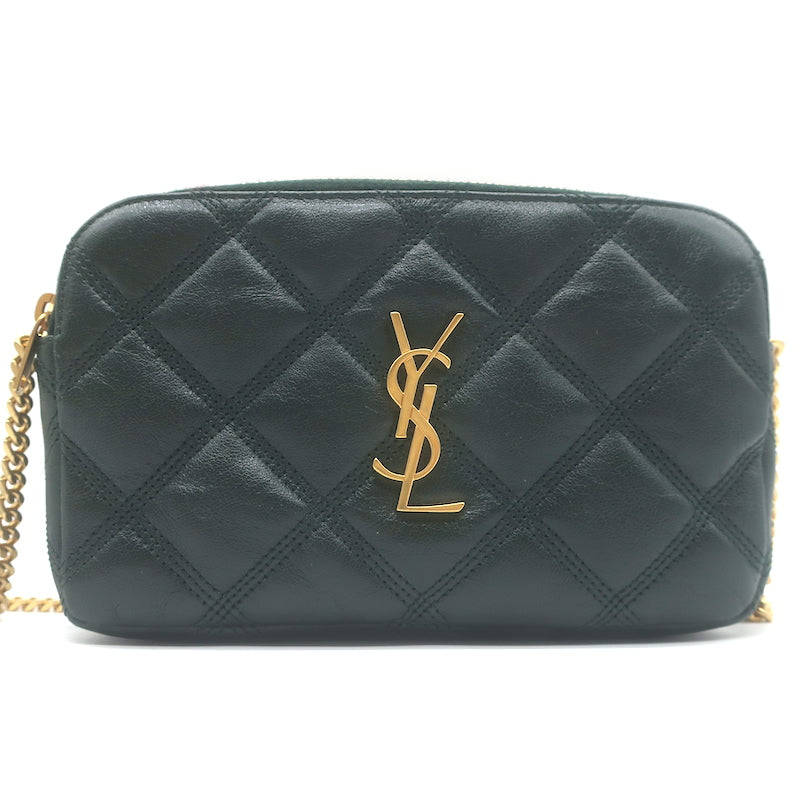 Saint Laurent Becky Quilted Double Zip Pouch Dark Green Leather Crossbody Bag