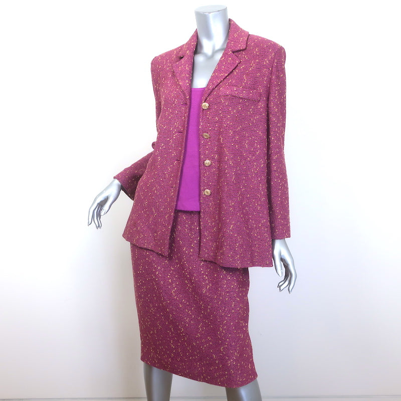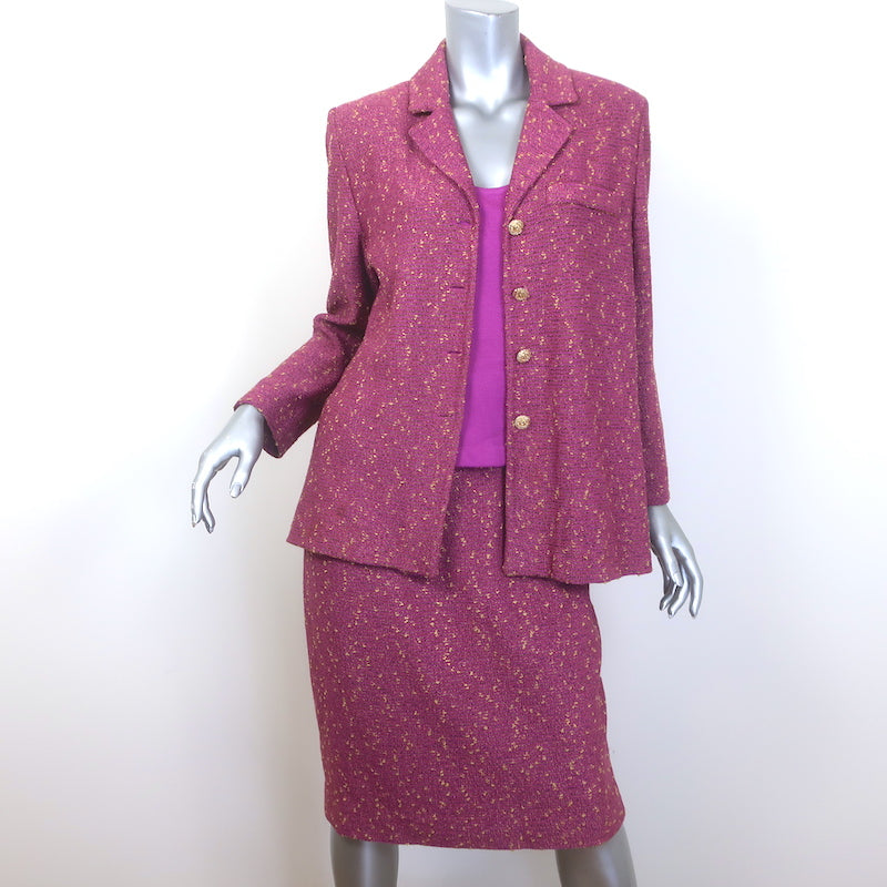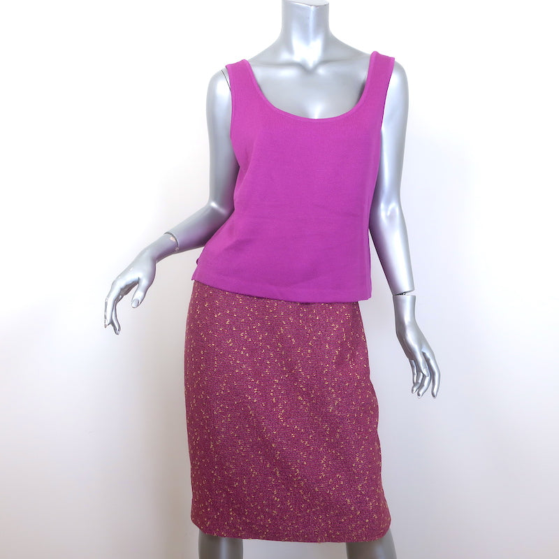 St. John Collection Speckled Knit Skirt Suit & Tank Top Fuchsia Size 8