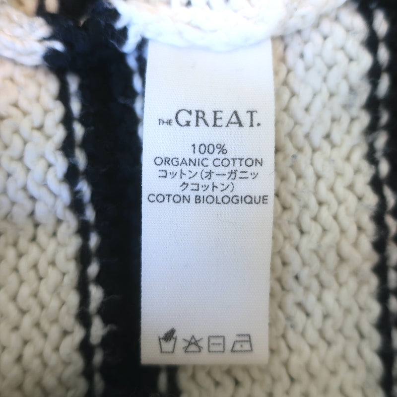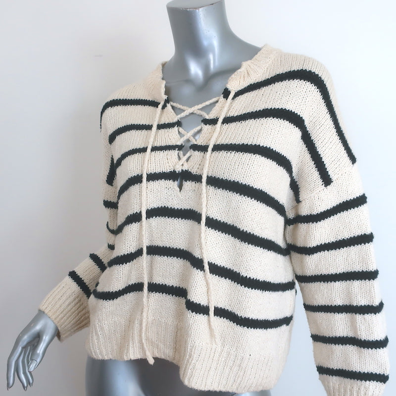 THE GREAT The Sea Stripe Lace-Up Pullover Sweater Cream/Black Cotton Size 1