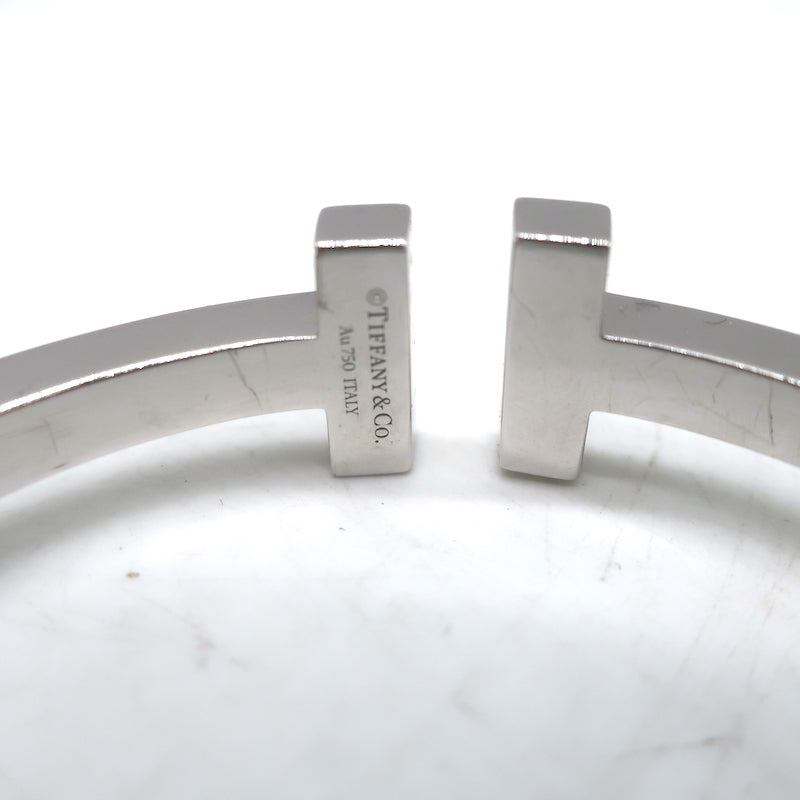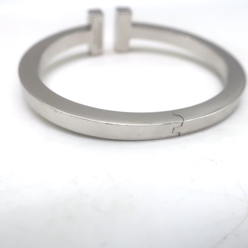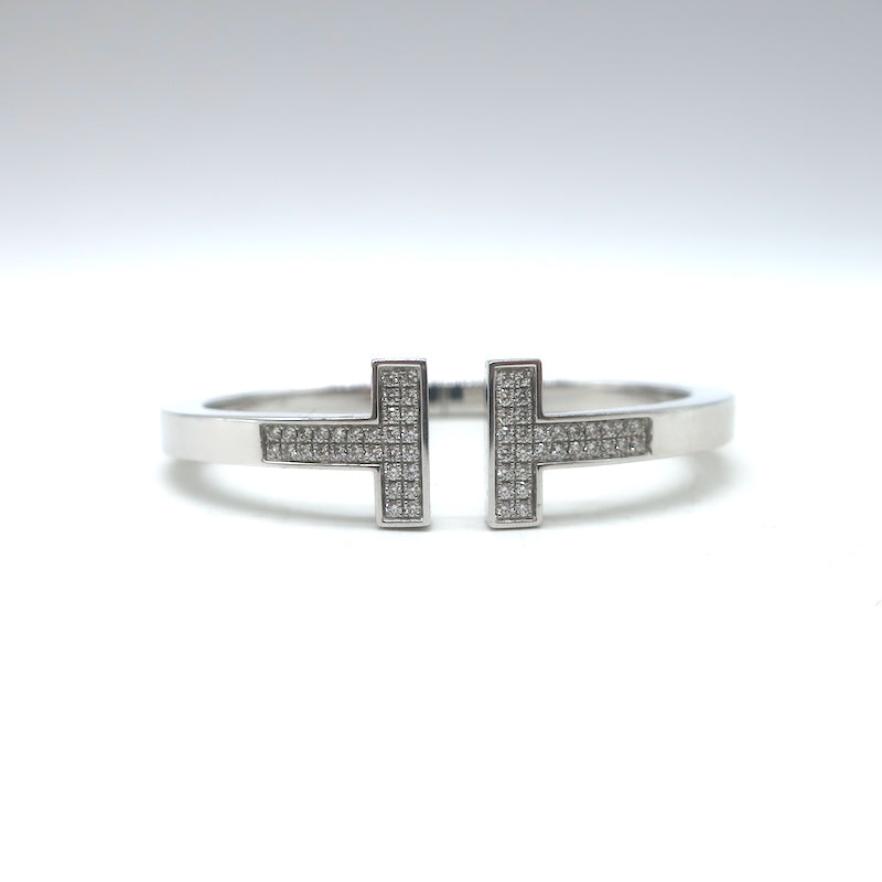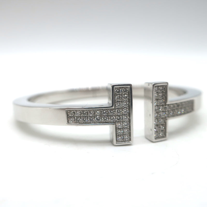 Tiffany & Co. T Pavé Diamond Square Bracelet 18K White Gold Size Small