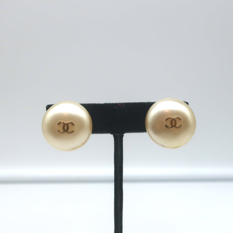 Vintage Chanel 1989 Faux Pearl CC Button Earrings