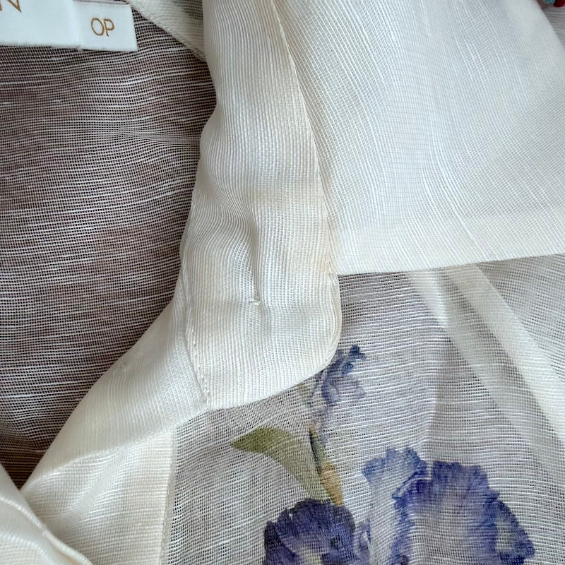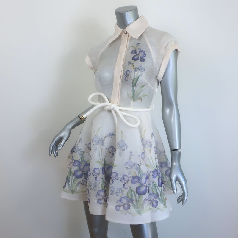 Zimmermann Natura Flip Belted Mini Dress Cream Floral Print Organza Size 0P