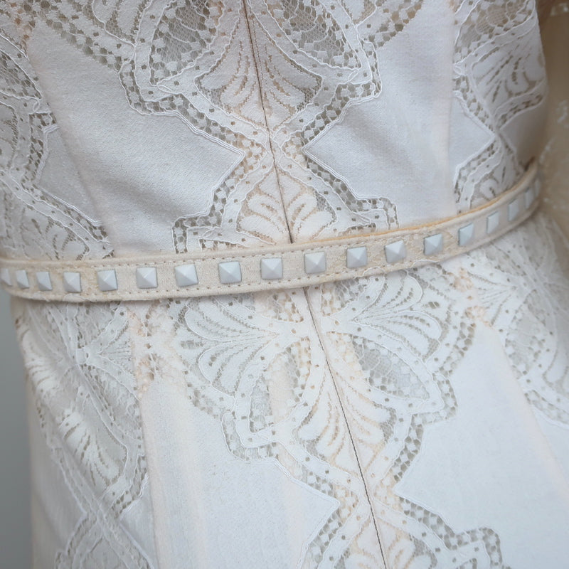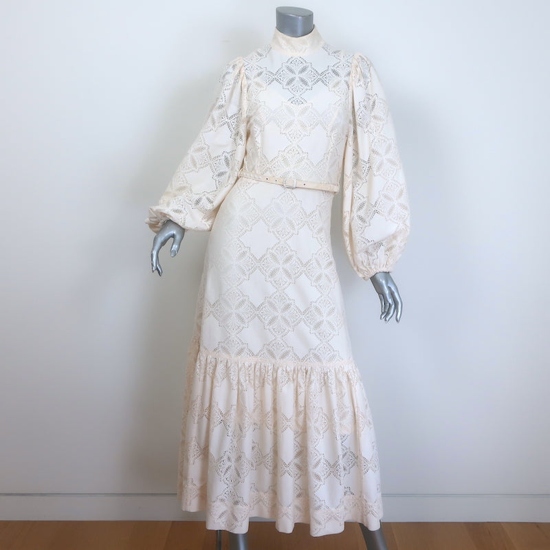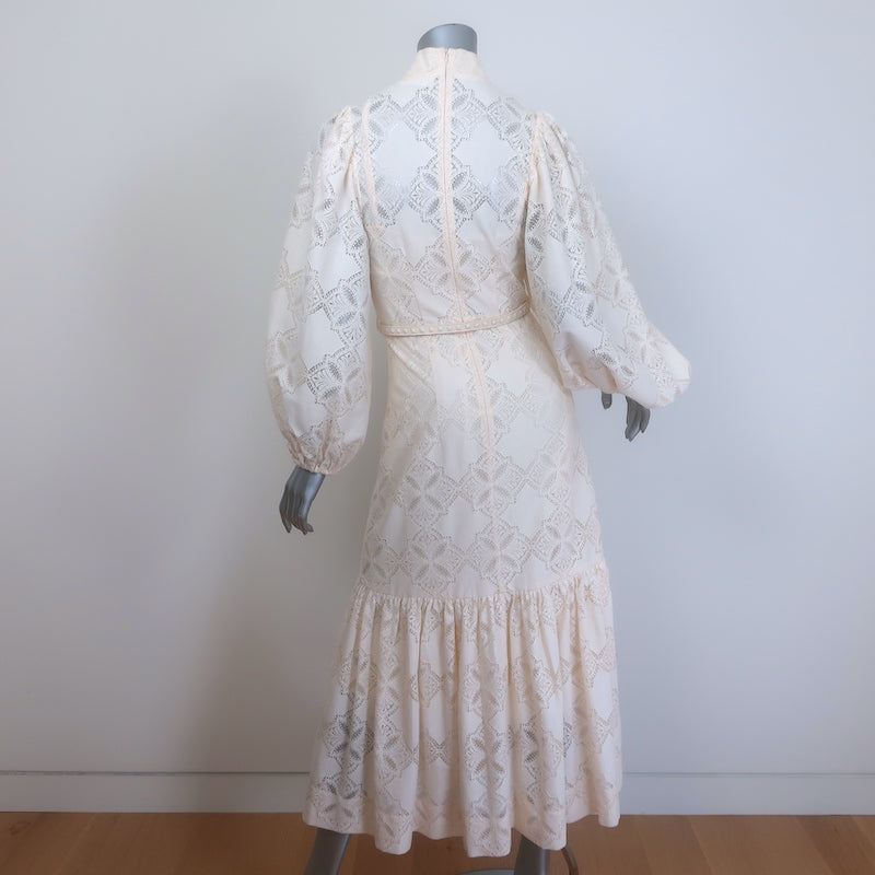 Zimmermann Rhythmic Lace High Neck Belted Midi Dress Ivory Size 0