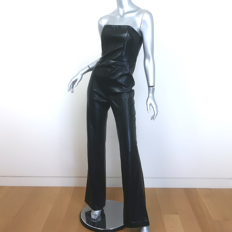 Alice + Olivia Lavera Vegan Leather Strapless Jumpsuit Black Size 4