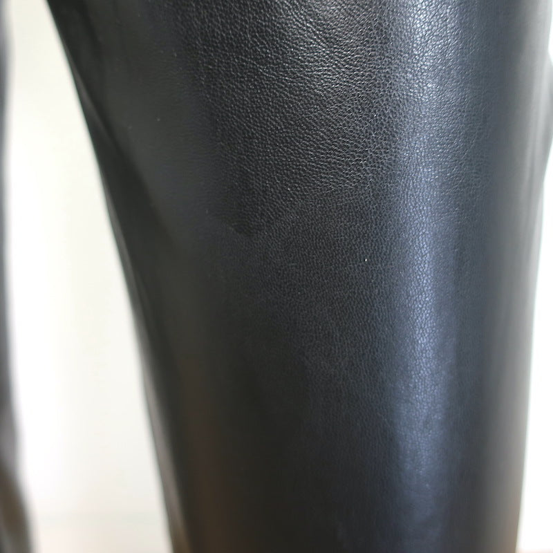 Lanvin Cap Toe Buttoned Knee High Boots Black Corduroy & Leather Size 39