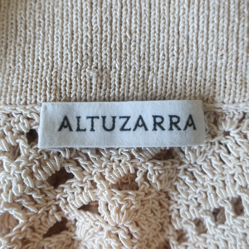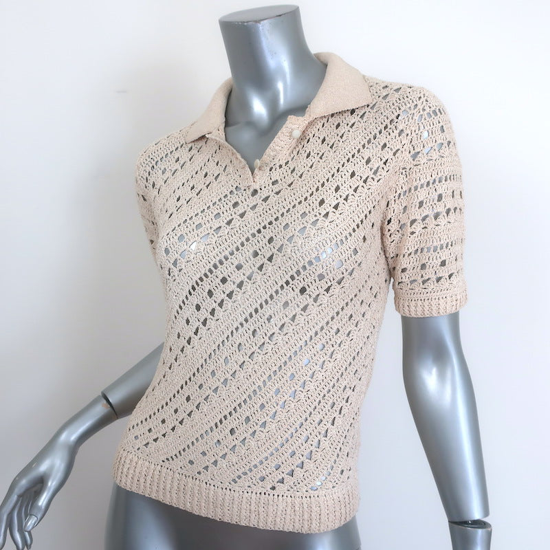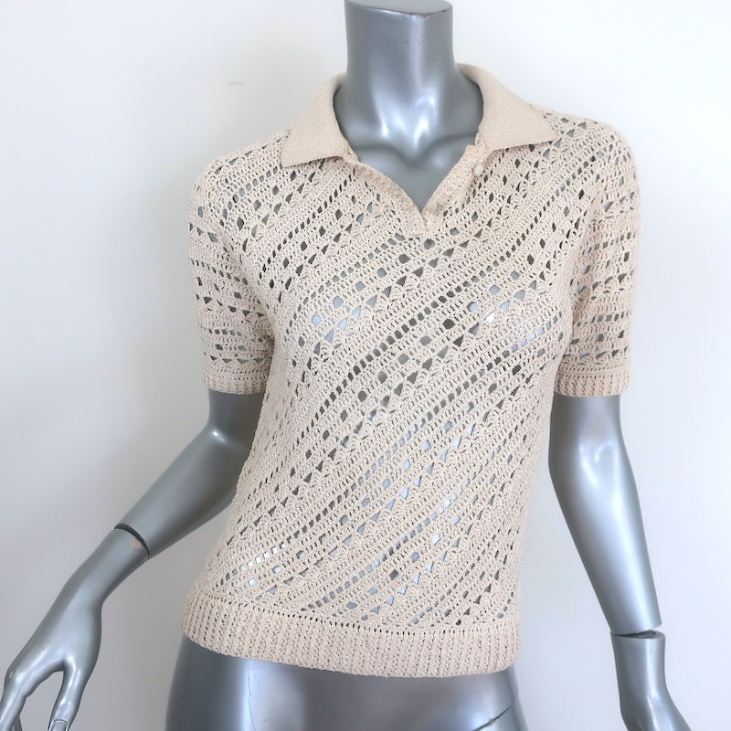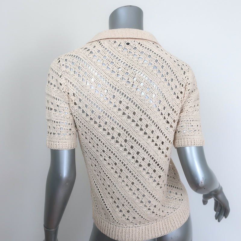 Altuzarra Crochet Knit Short Sleeve Polo Sweater Beige Size Small