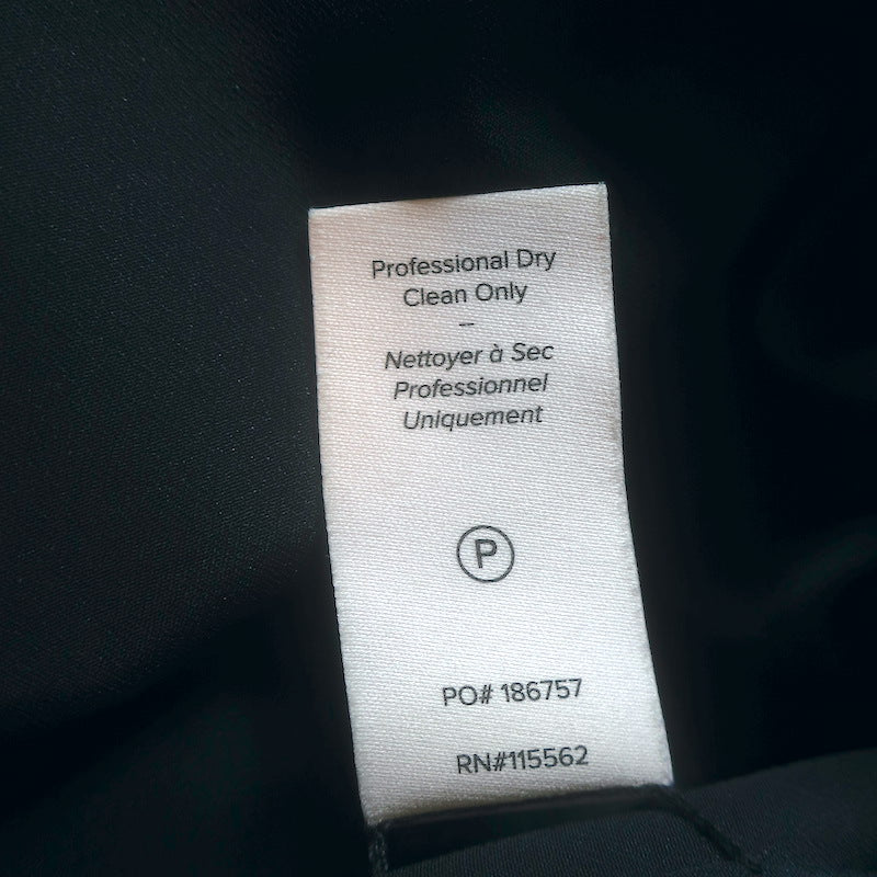 Pre-loved. White smudges throughout should come out with cleaning. Dress does not have pockets. Retails for $450! 97% cotton, 3% elastane -**-
