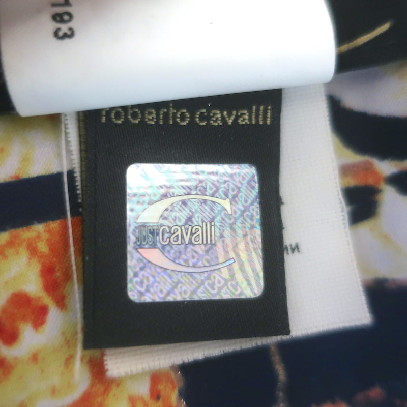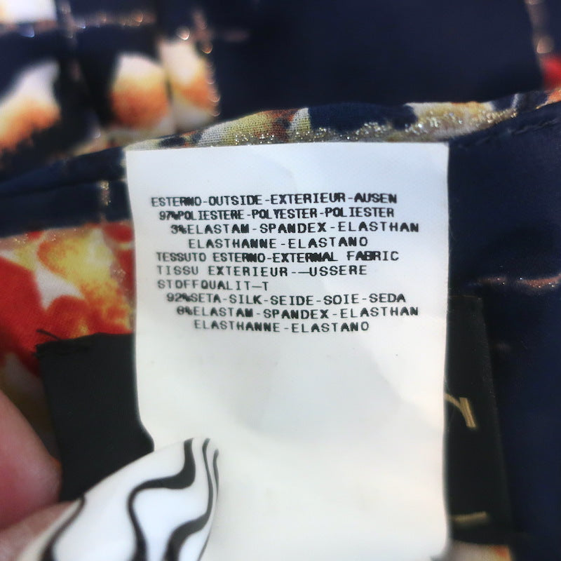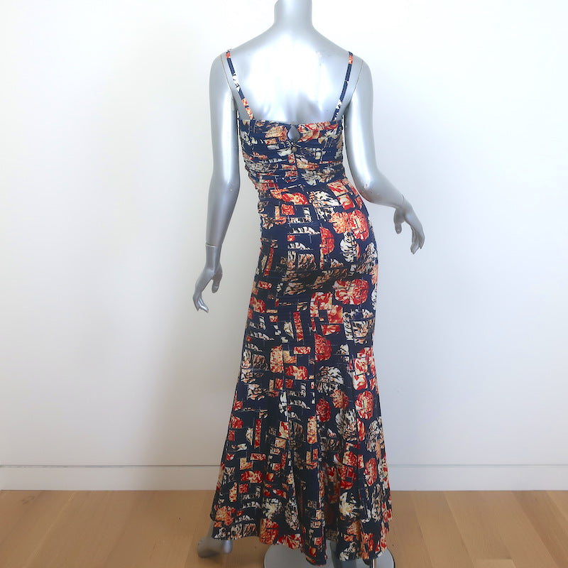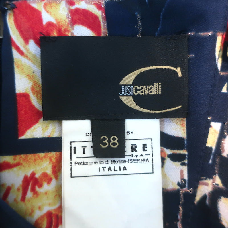 Just Cavalli Spaghetti Strap Gown Navy Metallic Floral Print Satin Size 38