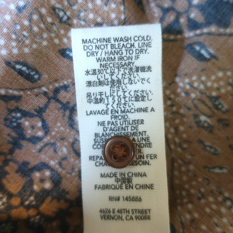 THE GREAT The Moorland Puff Sleeve Top Brown Printed Cotton Poplin Size 1