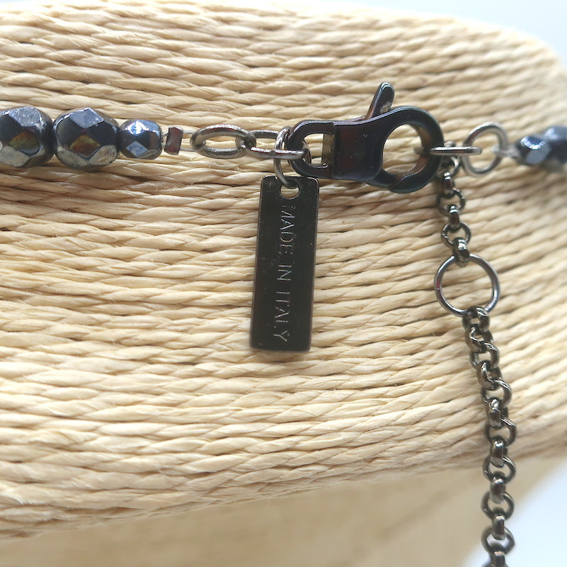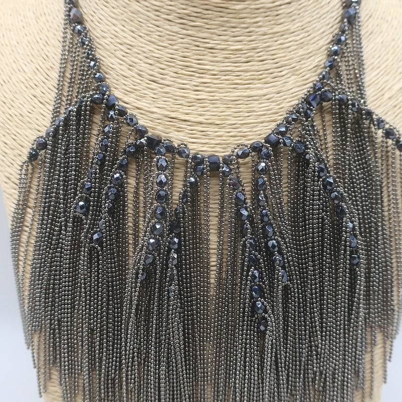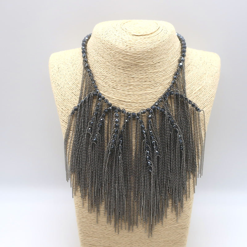Peserico Beaded Fringe Necklace Silver/Gunmetal
