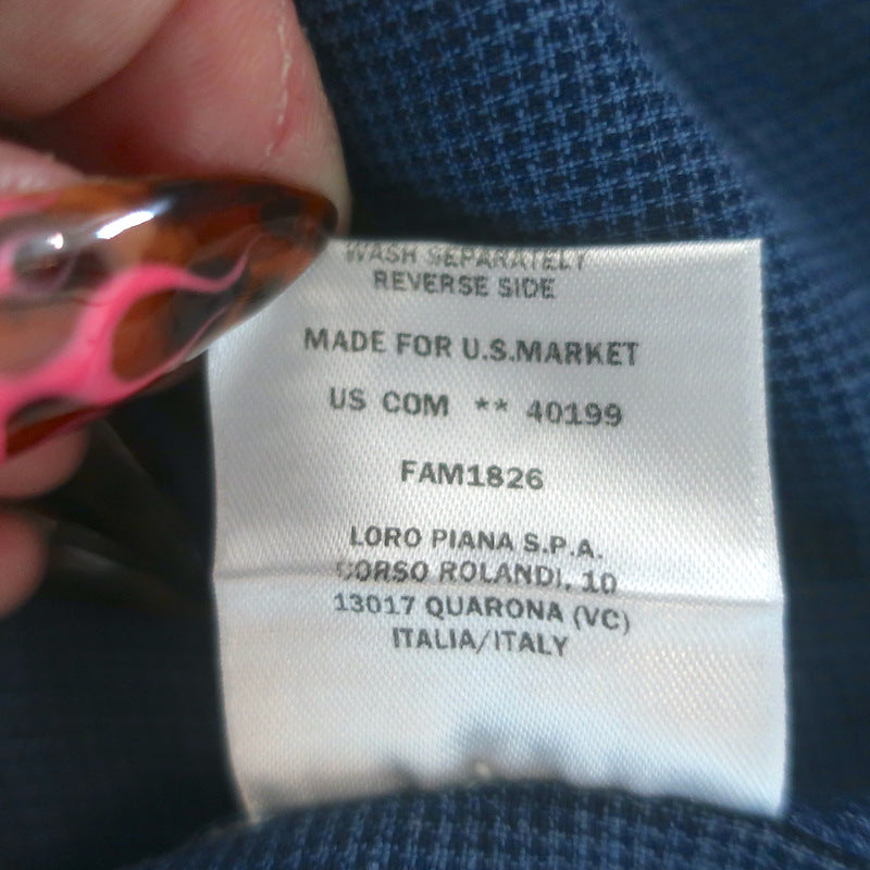 Loro Piana Andre Micro-Check Button Down Shirt Blue Linen Size Small