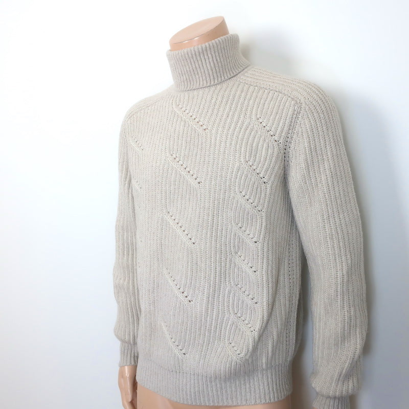 Loro Piana Cabled Cashmere Turtleneck Sweater Oatmeal Size 48
