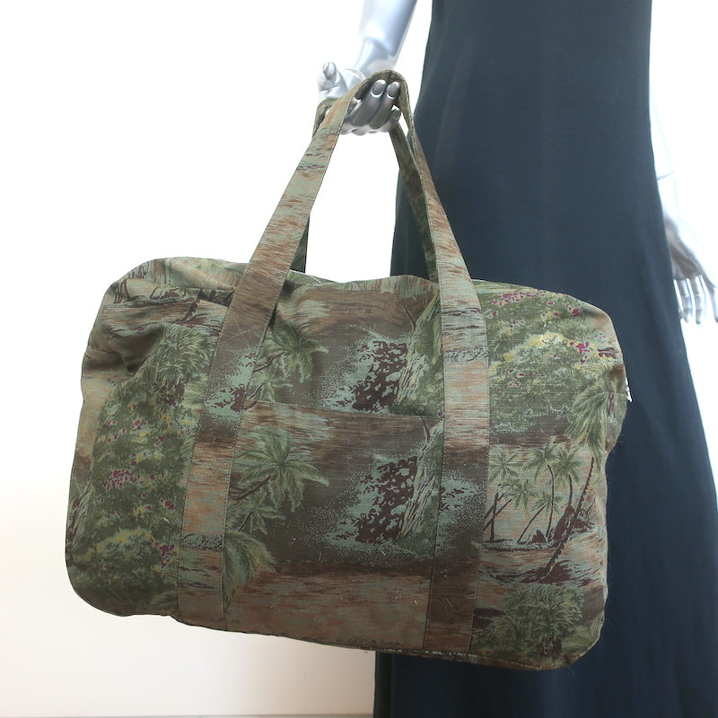 A.P.C. Tropical Print Canvas Duffle Bag Dark Green Extra Large Shoulder Bag