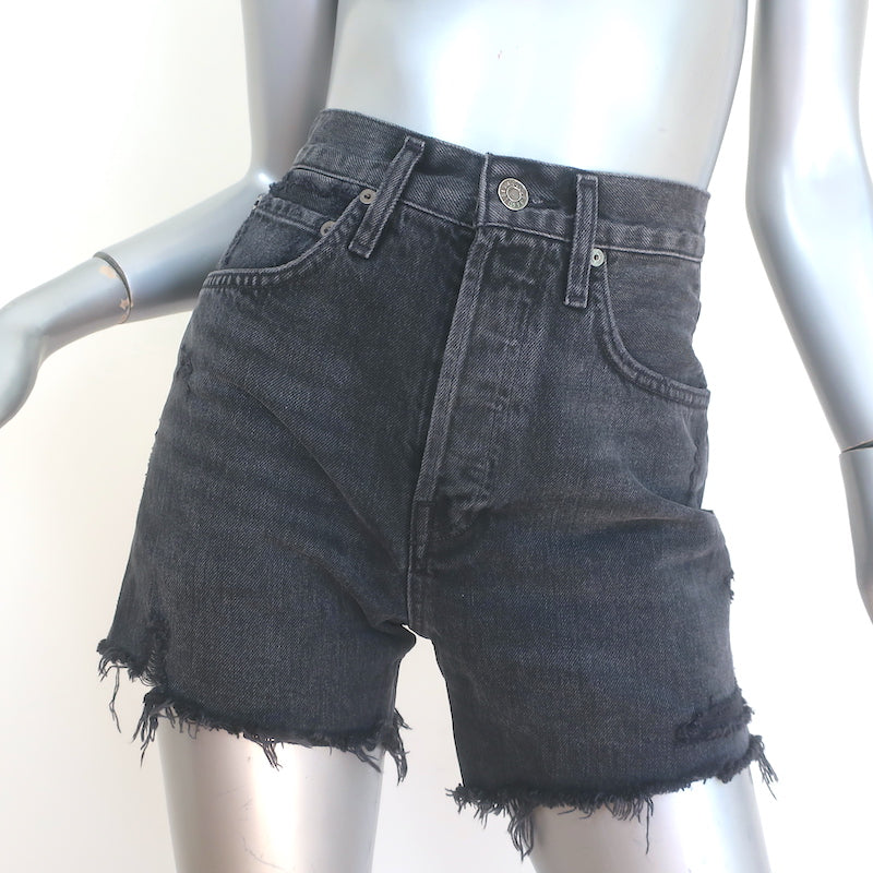 AGOLDE Riley Shorts Vortex Black Distressed Denim Size 24