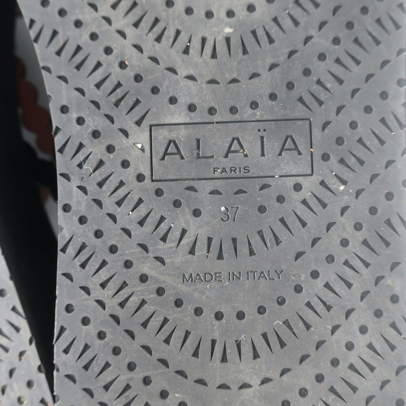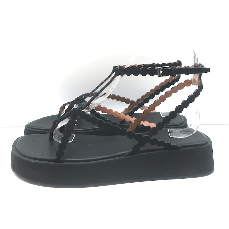 Alaia Chamois Minimal Flatform Sandals Black Scalloped Suede Size 37