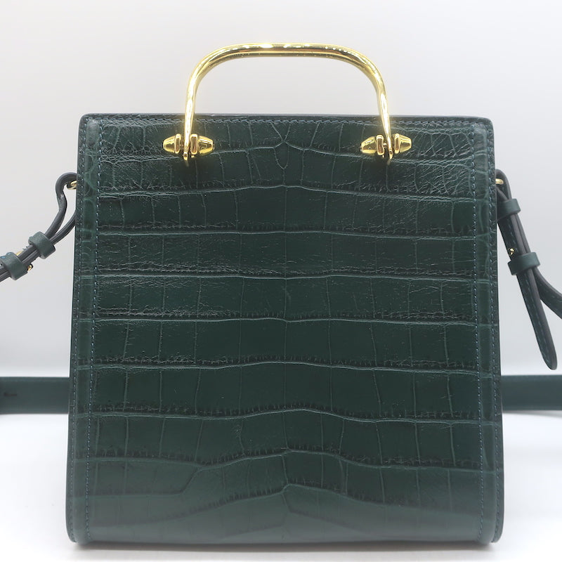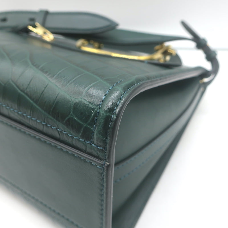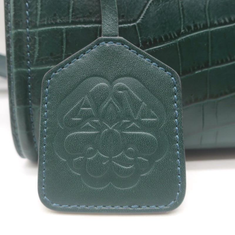 Alexander McQueen The Short Story Croc-Embossed Leather Crossbody Bag Dark Green