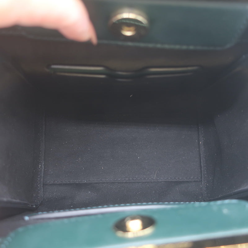 Gently used. Good condition. 2 very faint scratches on front of bag and a few small scuffs on handles. Faint smudging on...