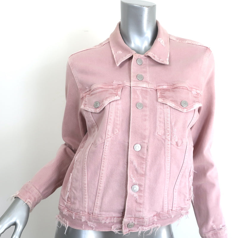 AMO Pop Destroyed Denim Jacket Blush Stretch Cotton Size Large