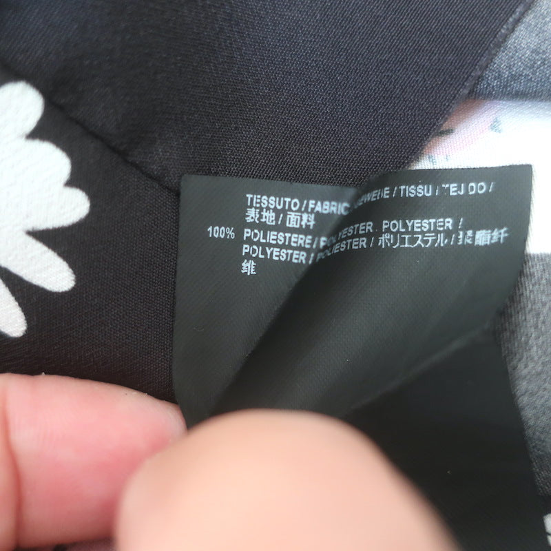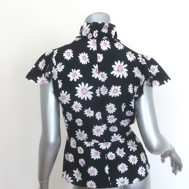 Balenciaga Daisy Print Ruffled Tie-Neck Top Black Crepe Size 34