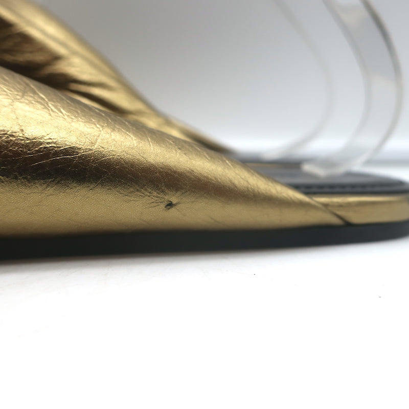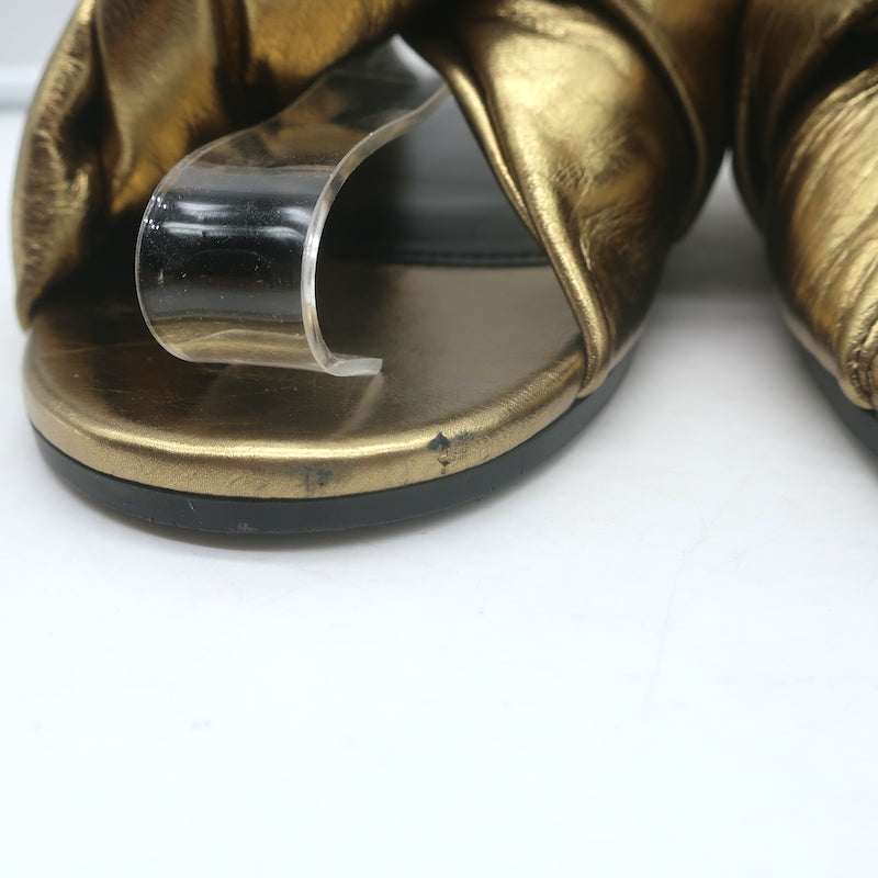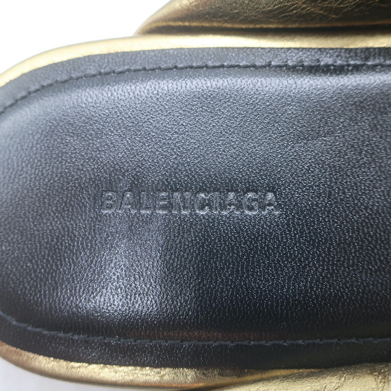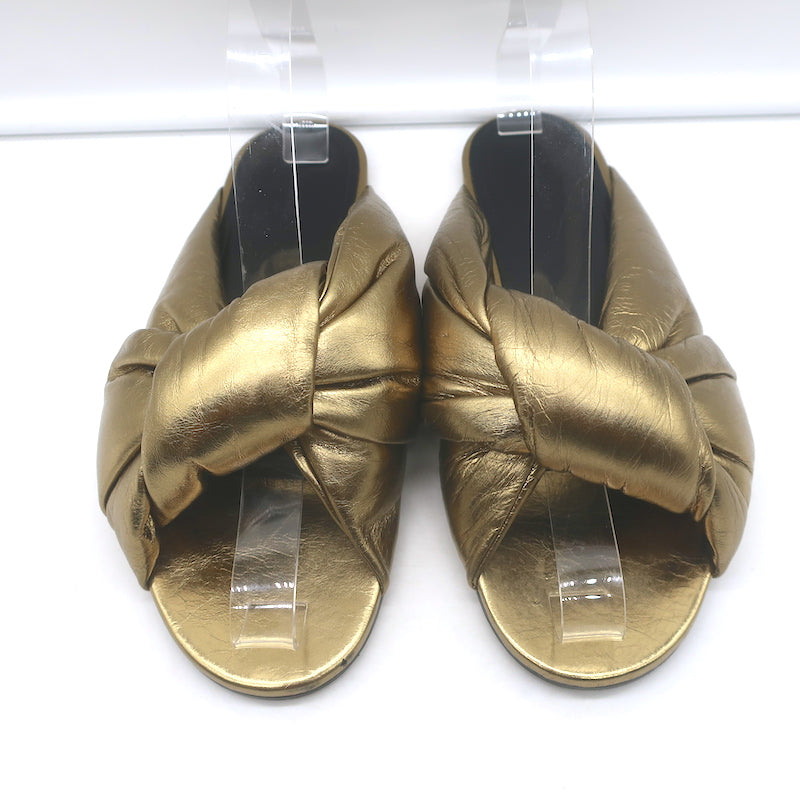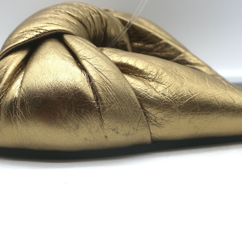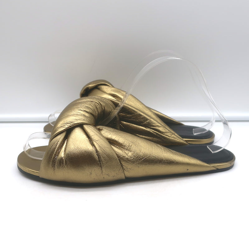 Balenciaga Drapy Knotted Slide Sandals Gold Metallic Leather Size 38.5