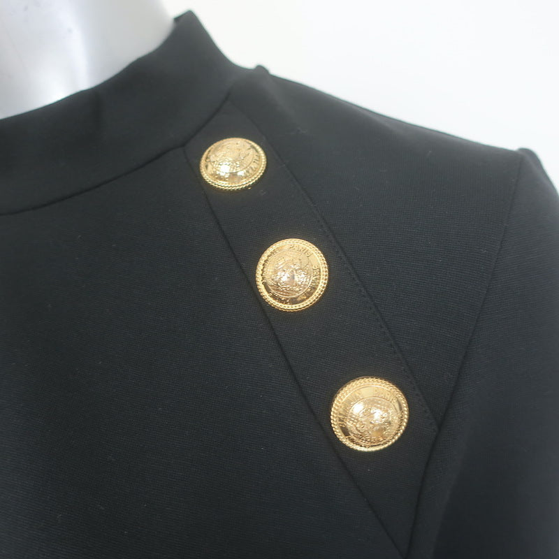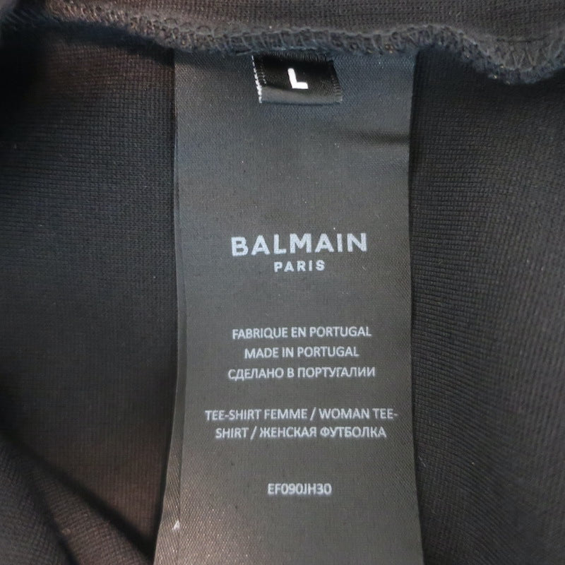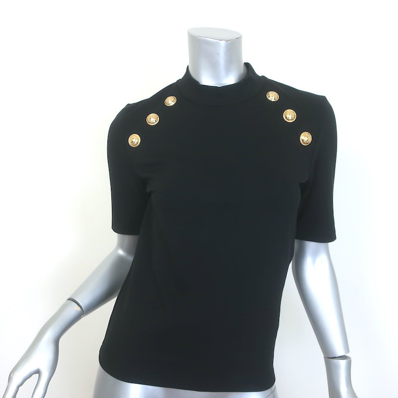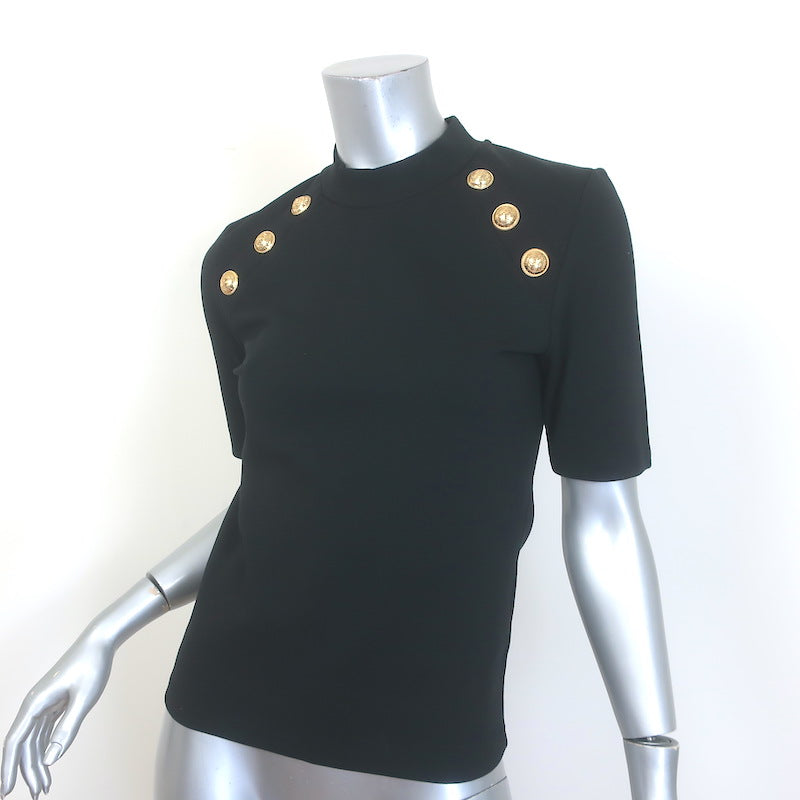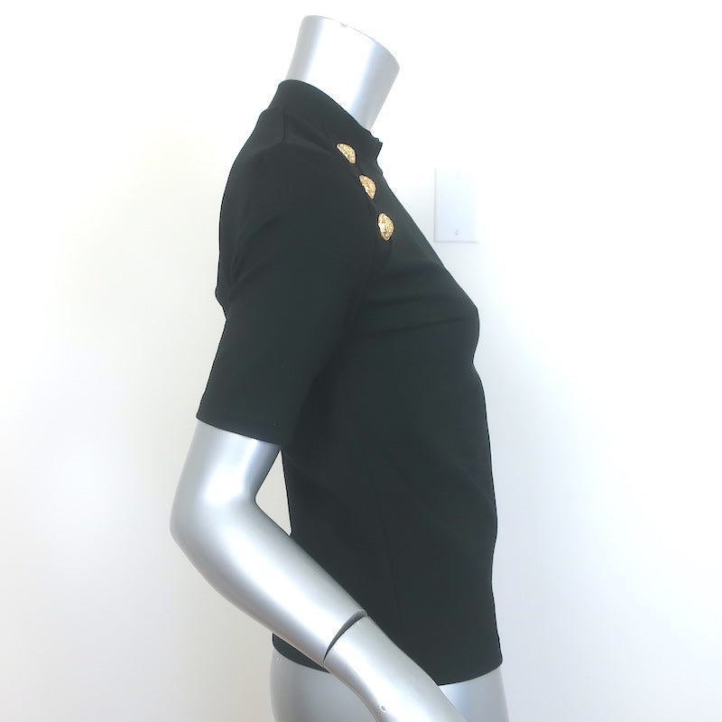 Balmain 6-Button Raglan T-Shirt Black Stretch Jersey Size Large Short Sleeve Top