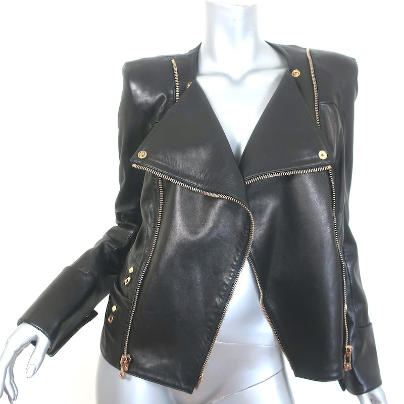 Balmain Double-Zip Leather Biker Jacket Black Size 42