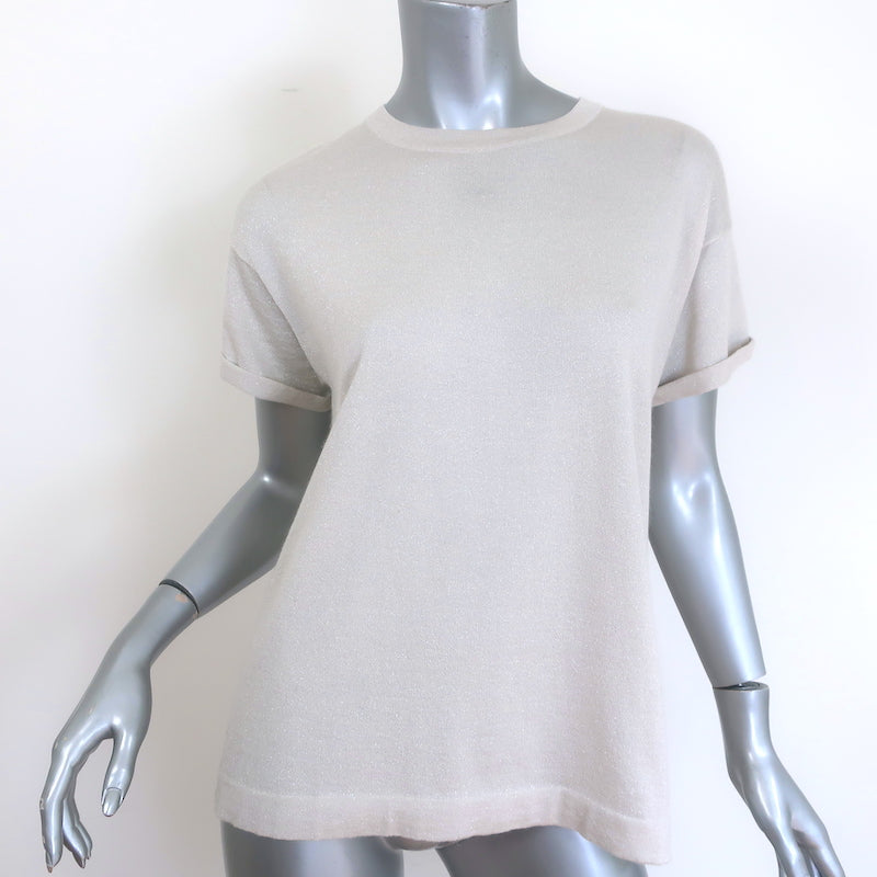 Brunello Cucinelli Sparkling Knit Sweater Top Ecru Cashmere-Silk Size Small