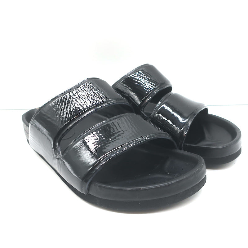 Celine Double Band Slide Sandals Black Patent Leather Size 37