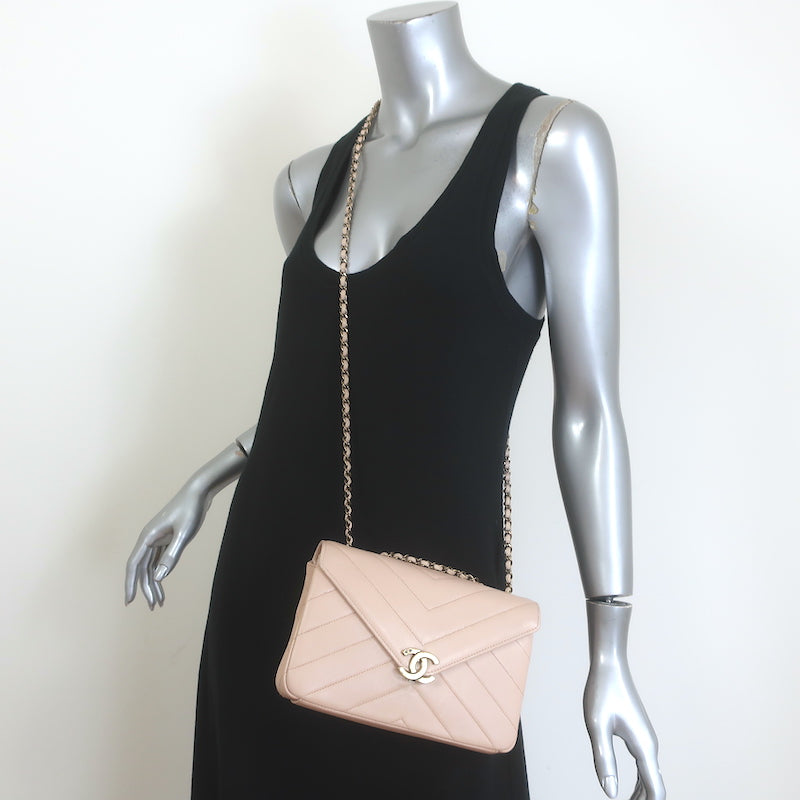 Chanel 2016 Coco Envelope Flap Bag Beige Chevron Quilted Leather Crossbody