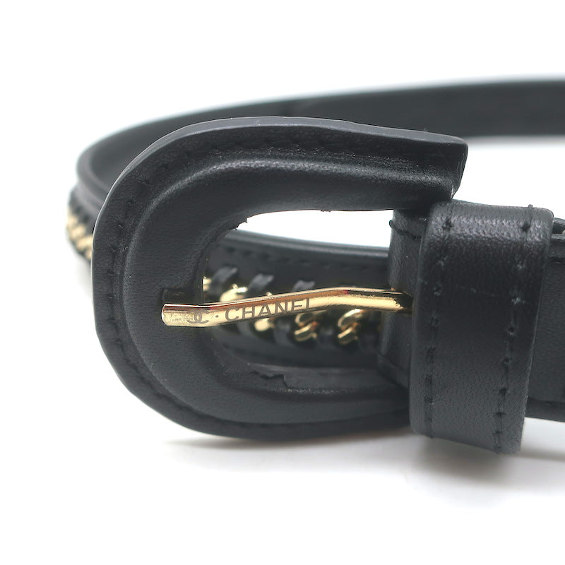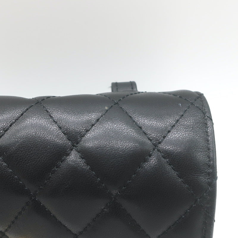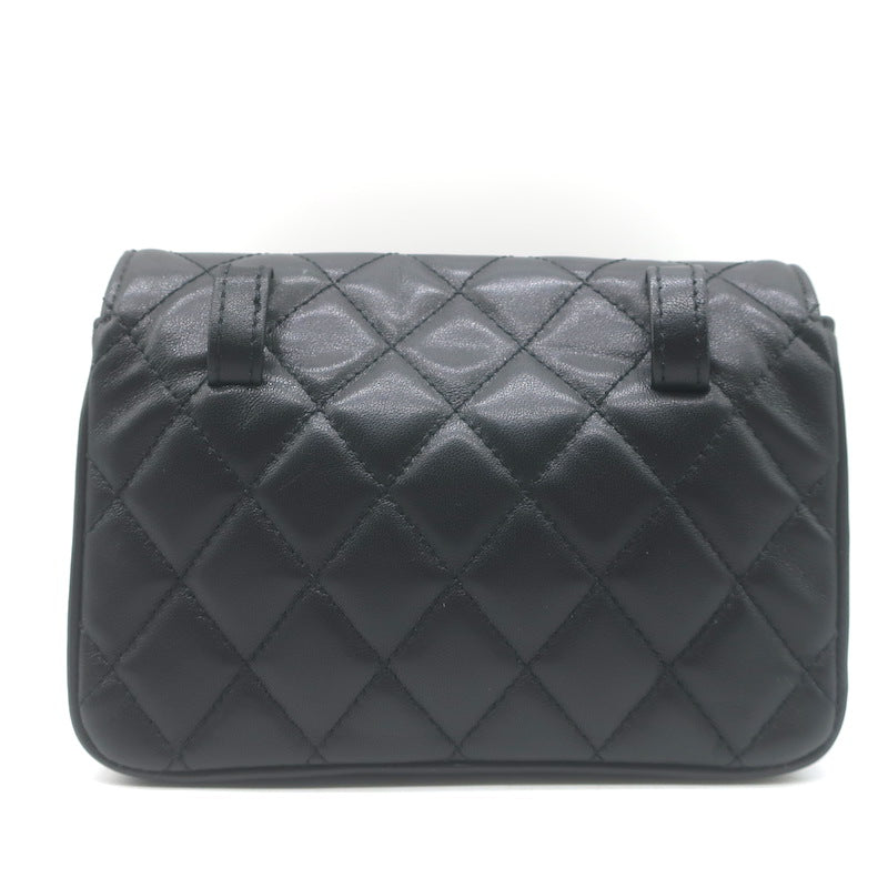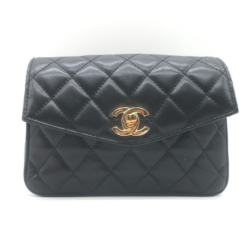 Chanel 2017 Quilted Leather Chain-Trim Mini Envelope Belt Bag Black Size 85