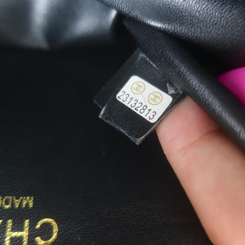 Pre-loved. Good condition. No major flaws, light wear on bottom corners. A few tiny white smudges may come out with a professional cleaning. Very faint scuffs on smooth leather. Scuffs and white smudges on underside of flap. Hardware is scuffed. Bag will fit iPhone Max models without a case. Comes with dust bag.