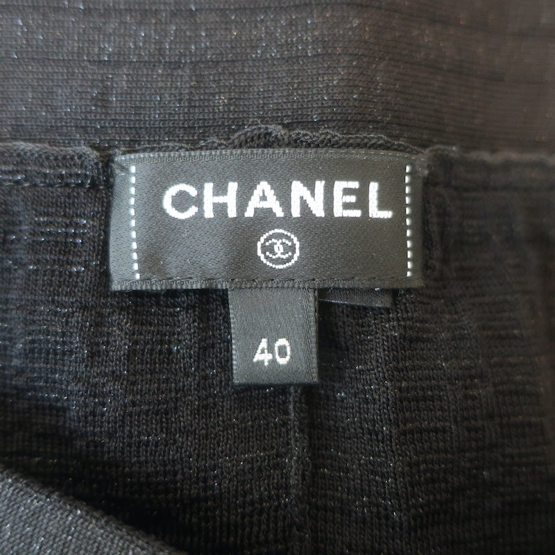 Chanel Metallic Knit Flared Pants Black Size 40