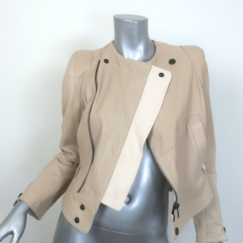 Chloe Linen-Trimmed Leather Biker Jacket Beige Size 36