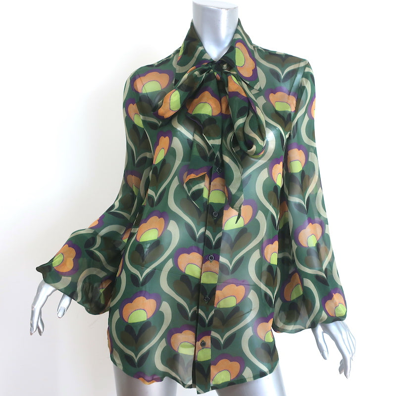 Cout De La Liberte Isaac Bell Sleeve Top Green Printed Silk Size Extra Small NEW