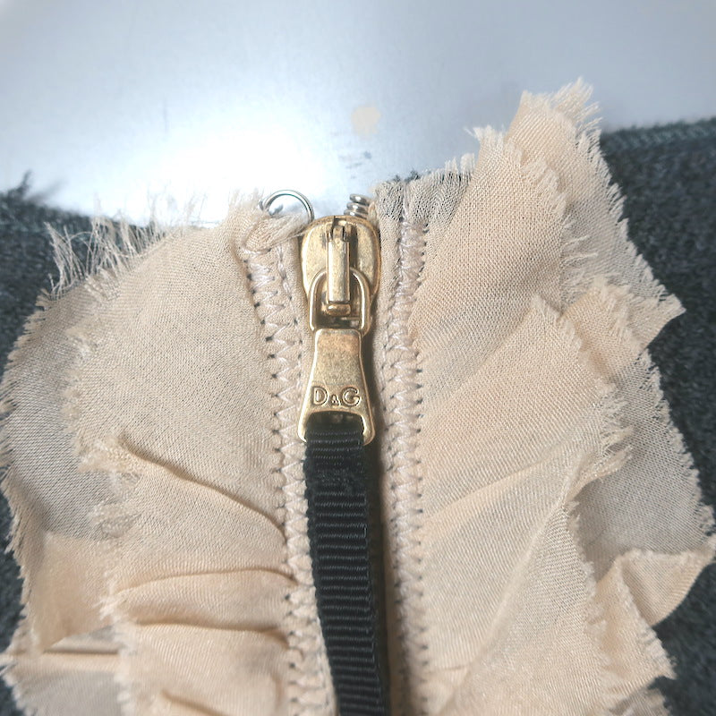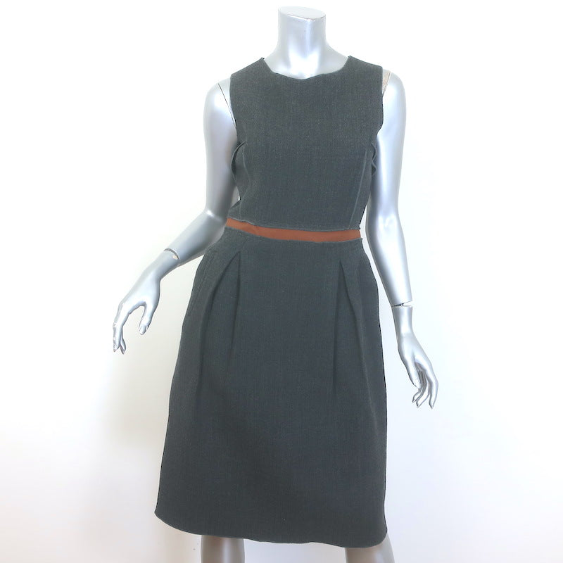 D&G Dolce & Gabbana Sleeveless Ruffle-Back Sheath Dress Gray Wool-Silk Size 44