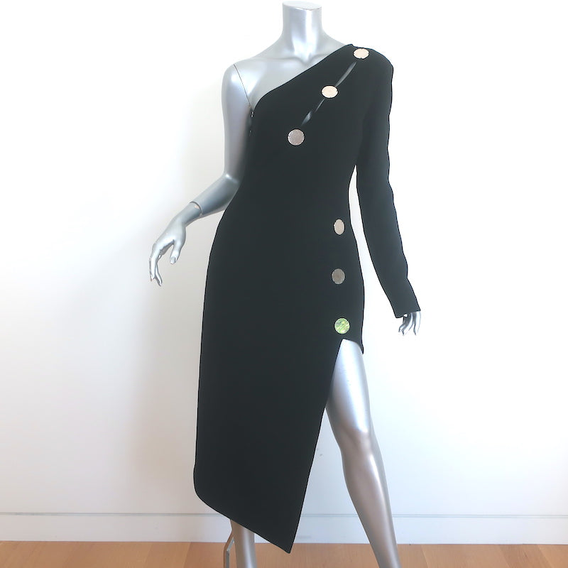 David Koma Mirror-Embellised One Shoulder Asymmetric Dress Black Size US 8/ UK 12