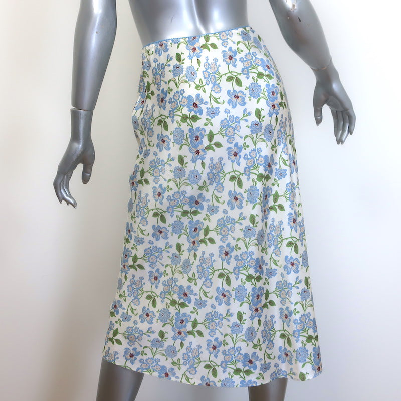 Doen Elowena Slip Skirt Ivory Strawberry Moon Floral Print Silk Satin Size Small
