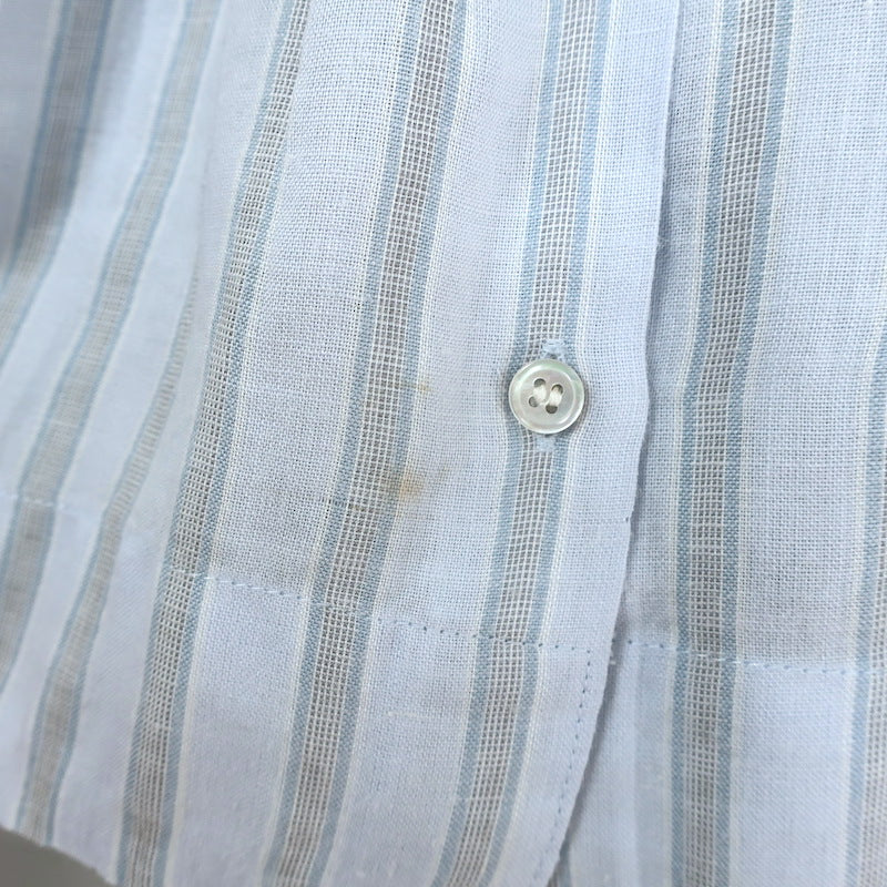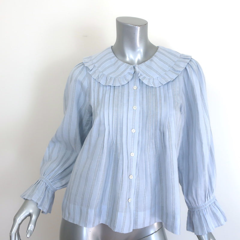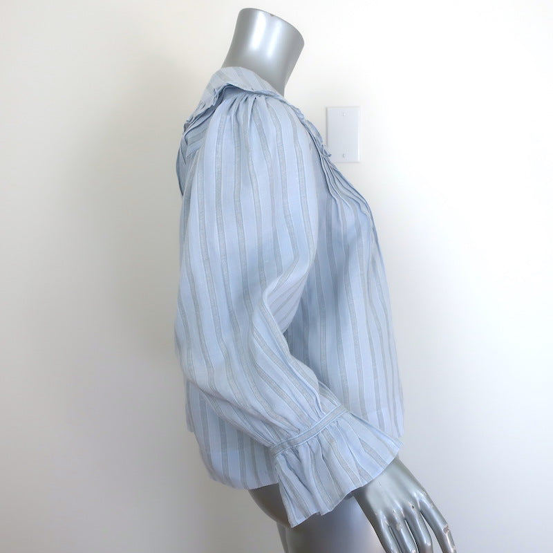 Doen Ruffled Collar Button Down Blouse Light Blue Striped Ramie Size Small