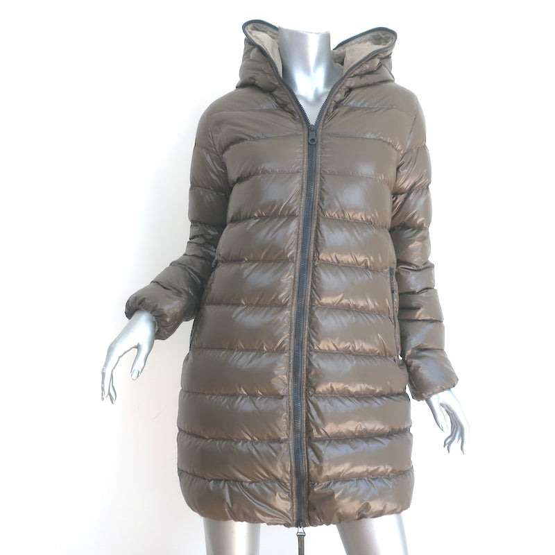 Duvetica Zip Hooded Down Coat Brown Size 42 Knee-Length Puffer Jacket