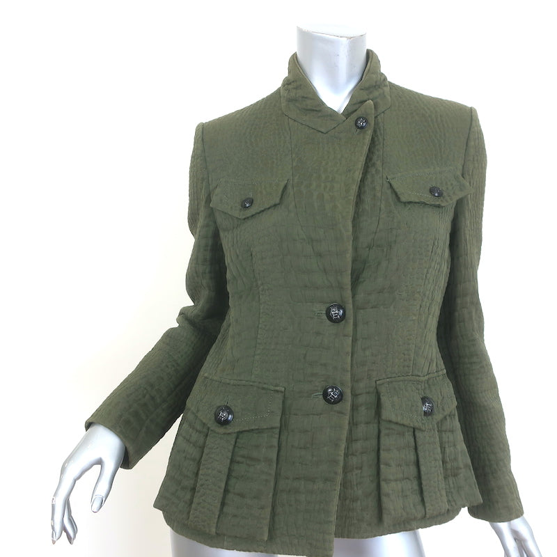 Emilio Pucci Croc-Embossed Jacquard Jacket Olive Cotton-Blend Size US 8