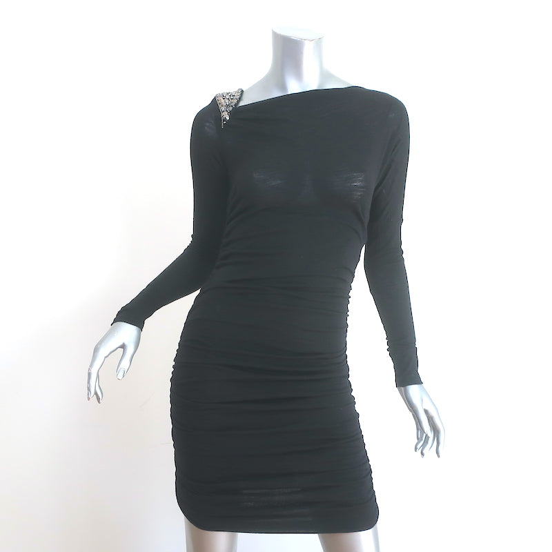 Emilio Pucci Embellished Shoulder Dress Black Ruched Wool Jersey Size US 6