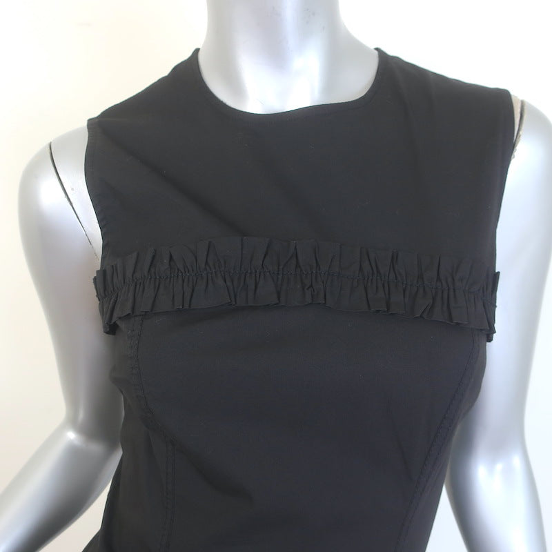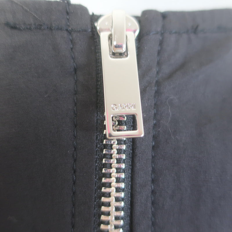 GANNI Ruffled Bubble Hem Mini Dress Black Stretch Cotton Size 34