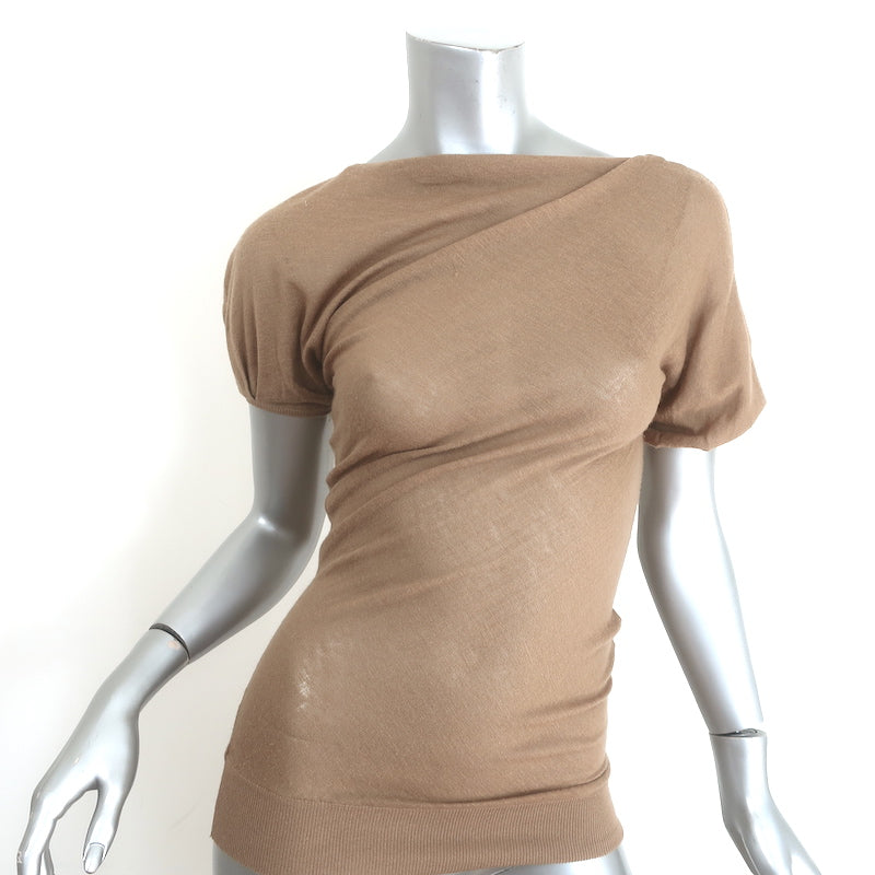 Giambattista Valli Asymmetric Short Sleeve Knit Top Tan Wool-Cashmere Size 44