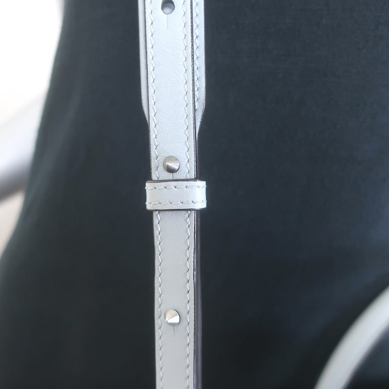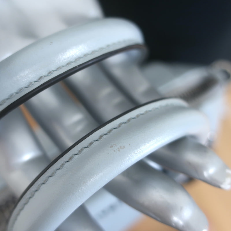 Pre-loved. Good condition. No major flaws, 3 faint scuffs on leather. Small hole along seam on back where elastic is attached; an...