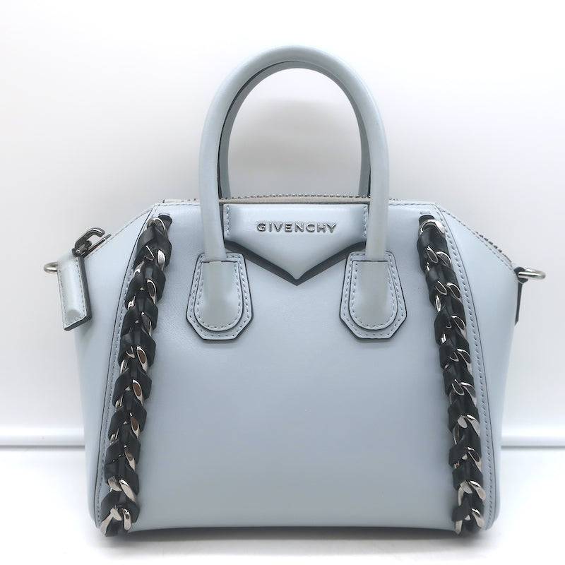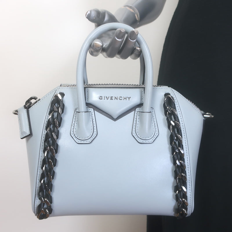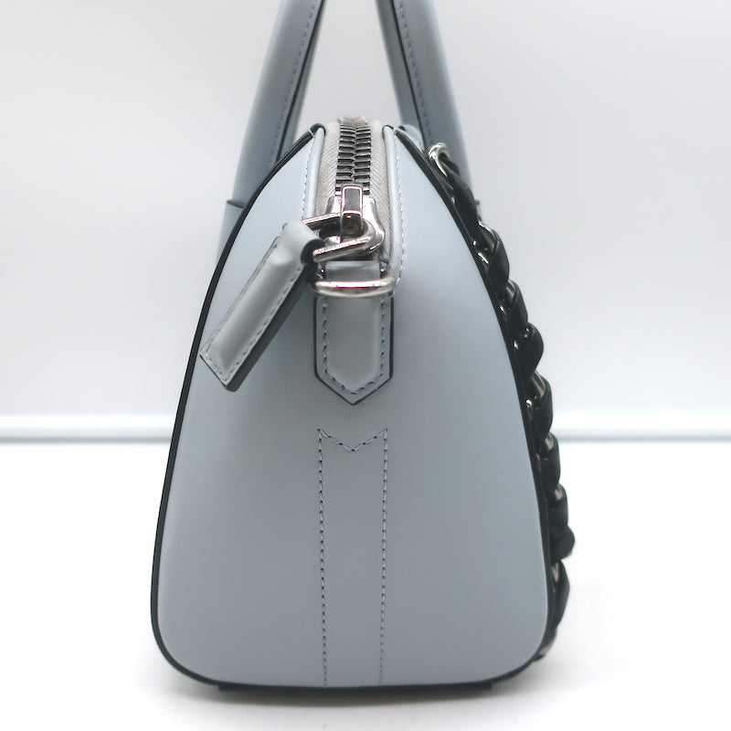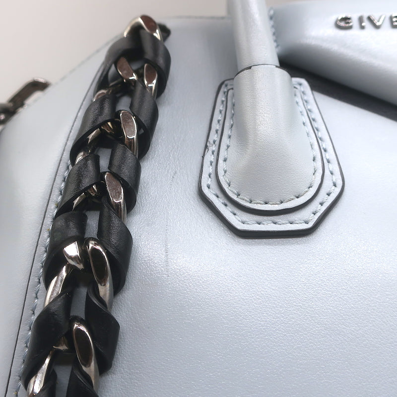 Givenchy Mini Antigona Woven Chain Satchel Sky Blue Leather Crossbody Bag