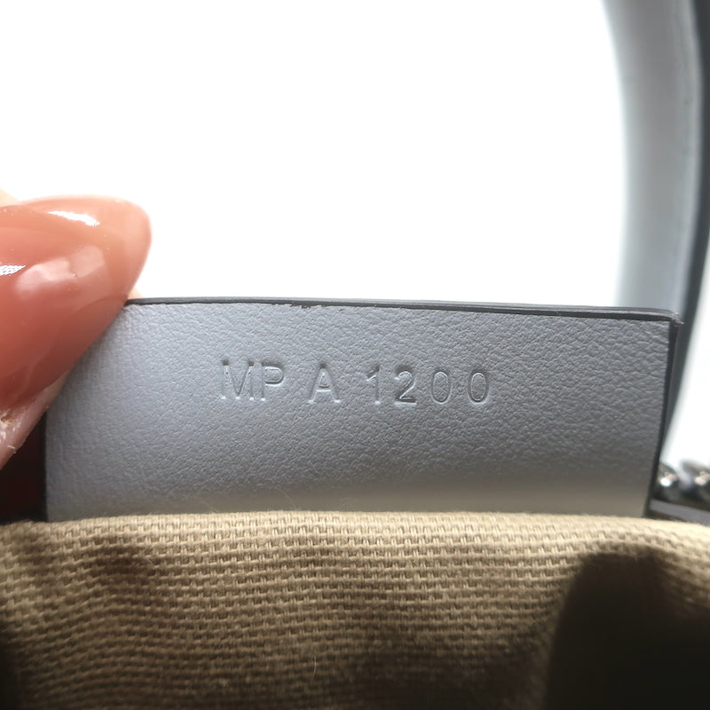Gently used. Good condition. 2 very faint scratches on front of bag and a few small scuffs on handles. Faint smudging on zipper tape. Very slight yellowing on front where right side of strap attaches to bag. Black smudging on tabs at ends of zipper. Light wear on zipper pull. Gray smudging on base tabs. Comes with dust bag. Retails for $1,990! Serial Number: MP A 1200