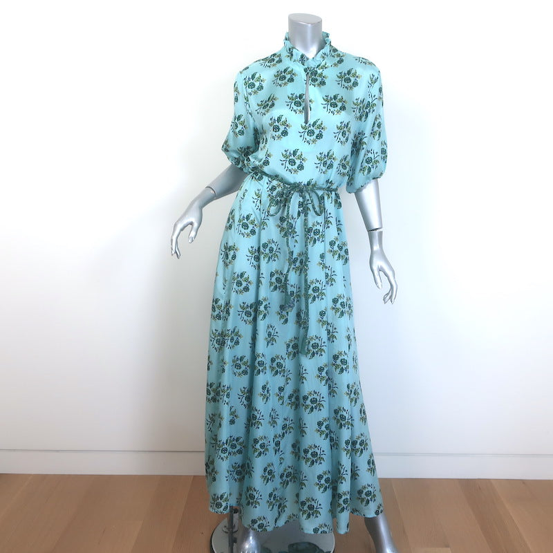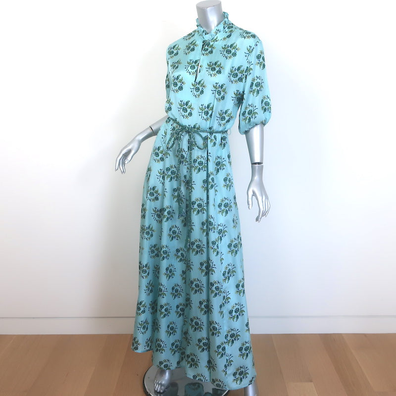 Hannah Artwear Oceanus Braided Belt Maxi Dress Blue Floral Print Silk Size 0