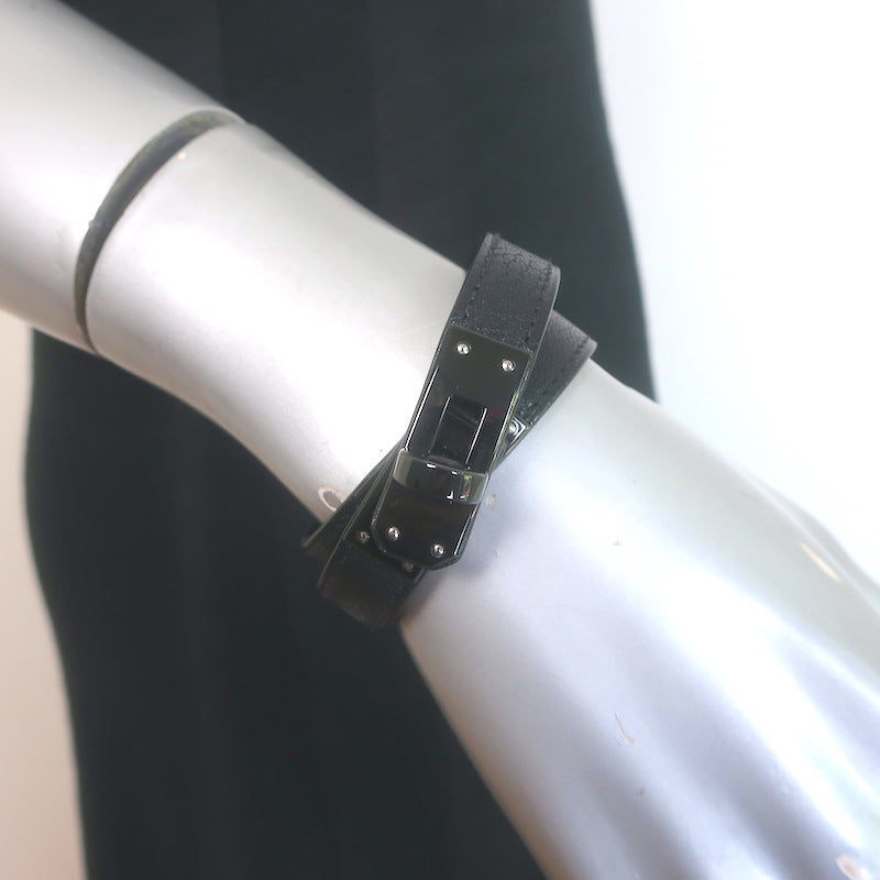 Hermes Kelly Double Tour So Black Bracelet Black Leather Size Medium